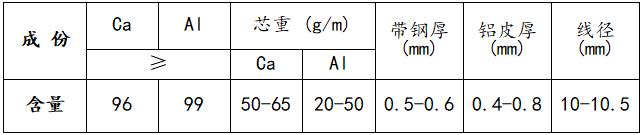 实芯钙铝线由内层铝皮包裹钙丝,外层钢带轧边咬合而成。 ①.能提高钙的收得率,有利于调整和控制易氧化元素和微量元素,起到纯洁钢液及改变夹杂物性能和形态的作用,提高钢水质量。